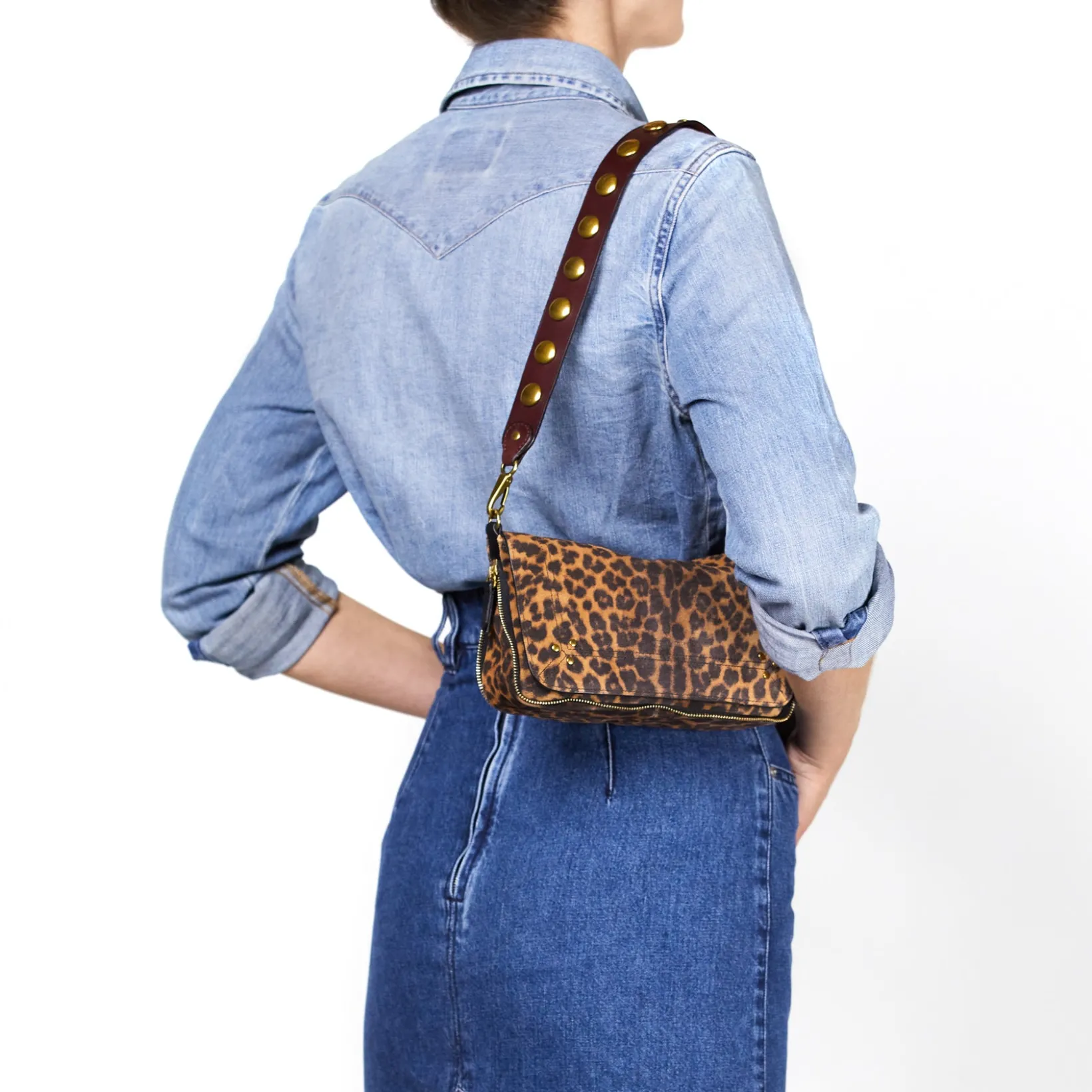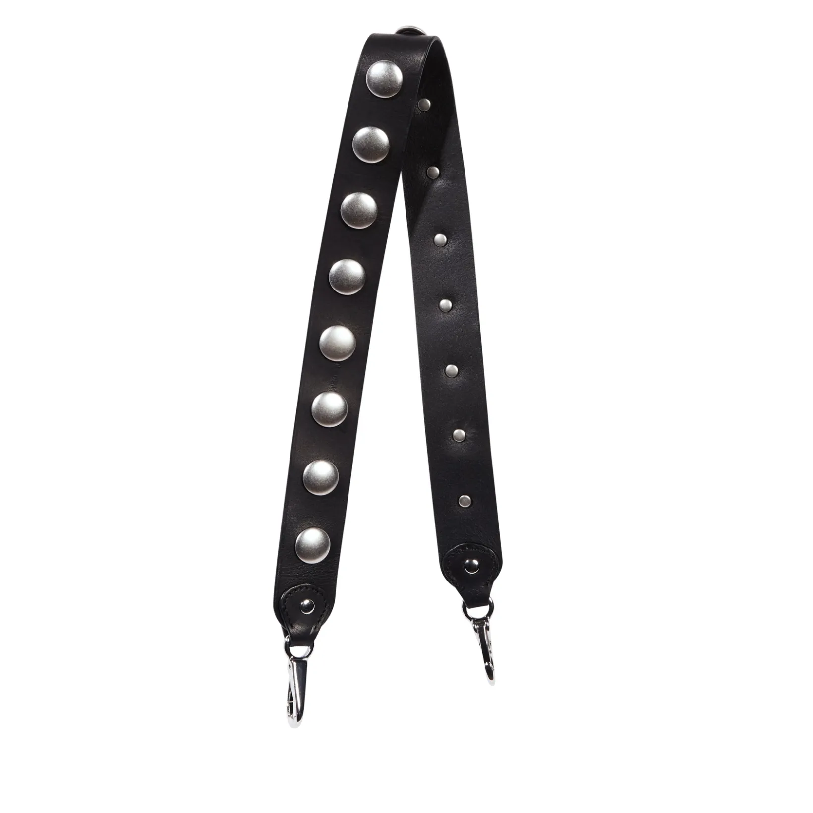 Short strip of genuine vegetable cowhide studded with large rounded metal studs and a hook at either end. Can be associated with Bobi, Igor, Lulu (S,M), Stan Panier M, Billy Nano, Pepito (S,M), RogerStrap 100% CowskinDimensions : 64 cm
