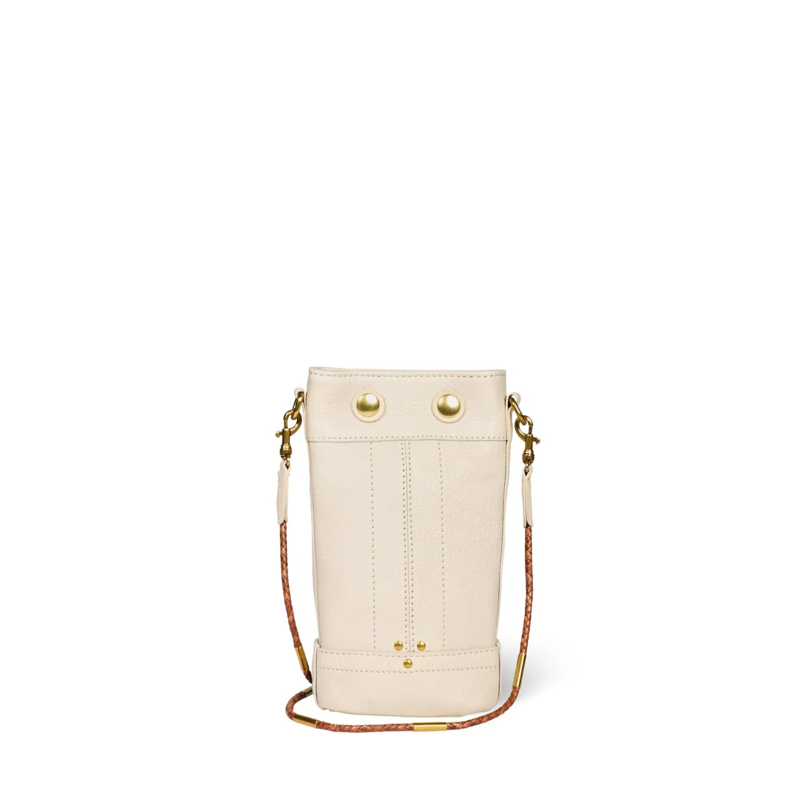 Snap button closure. A removable leather braided link, decorated with metal rings. Handbag 95% Goatskin 10…