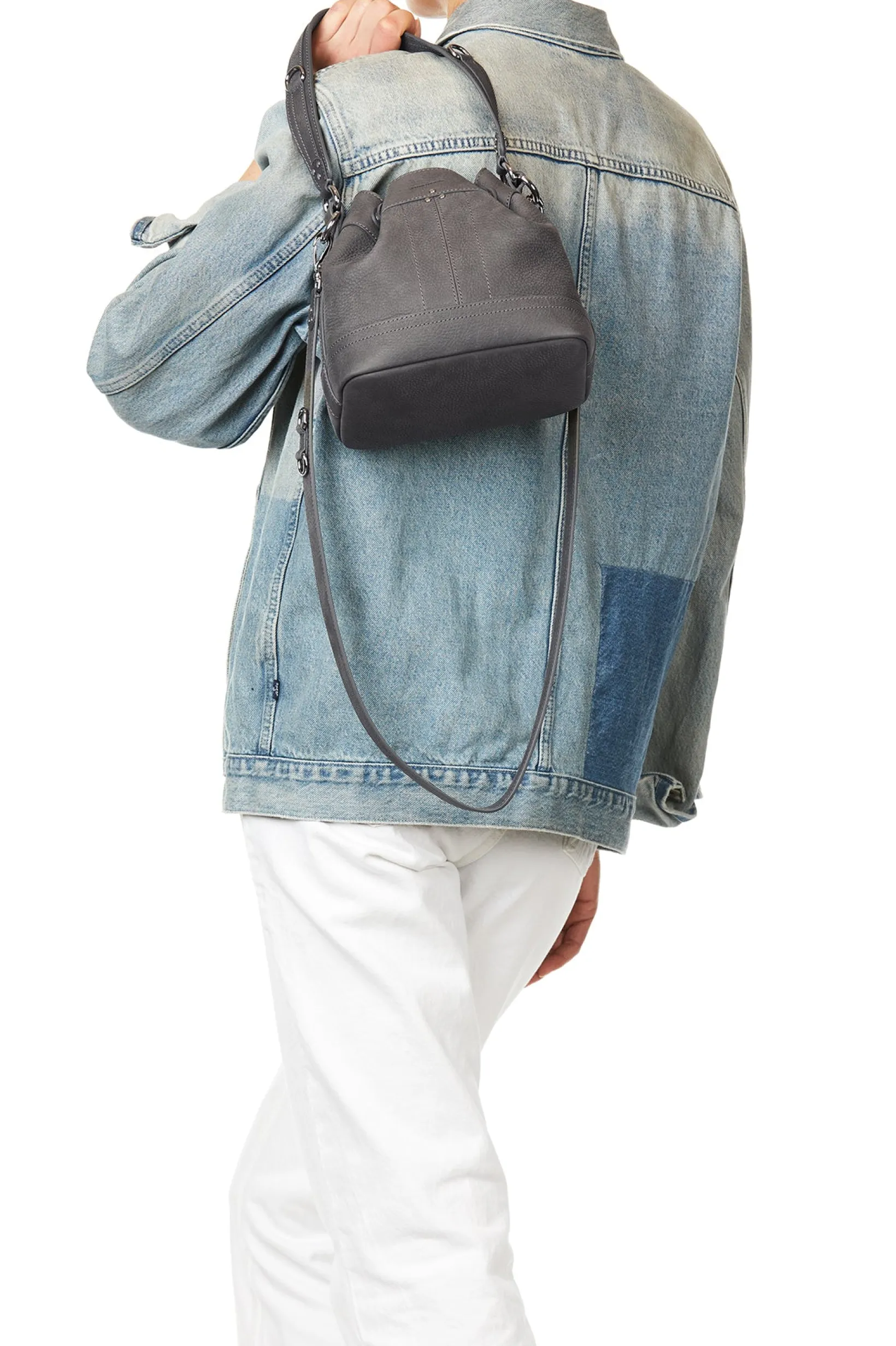 Adjustable snap closure. Worn on the shoulder or crossed. Detachable leather shoulder strap. Inside pocket with a keycha…