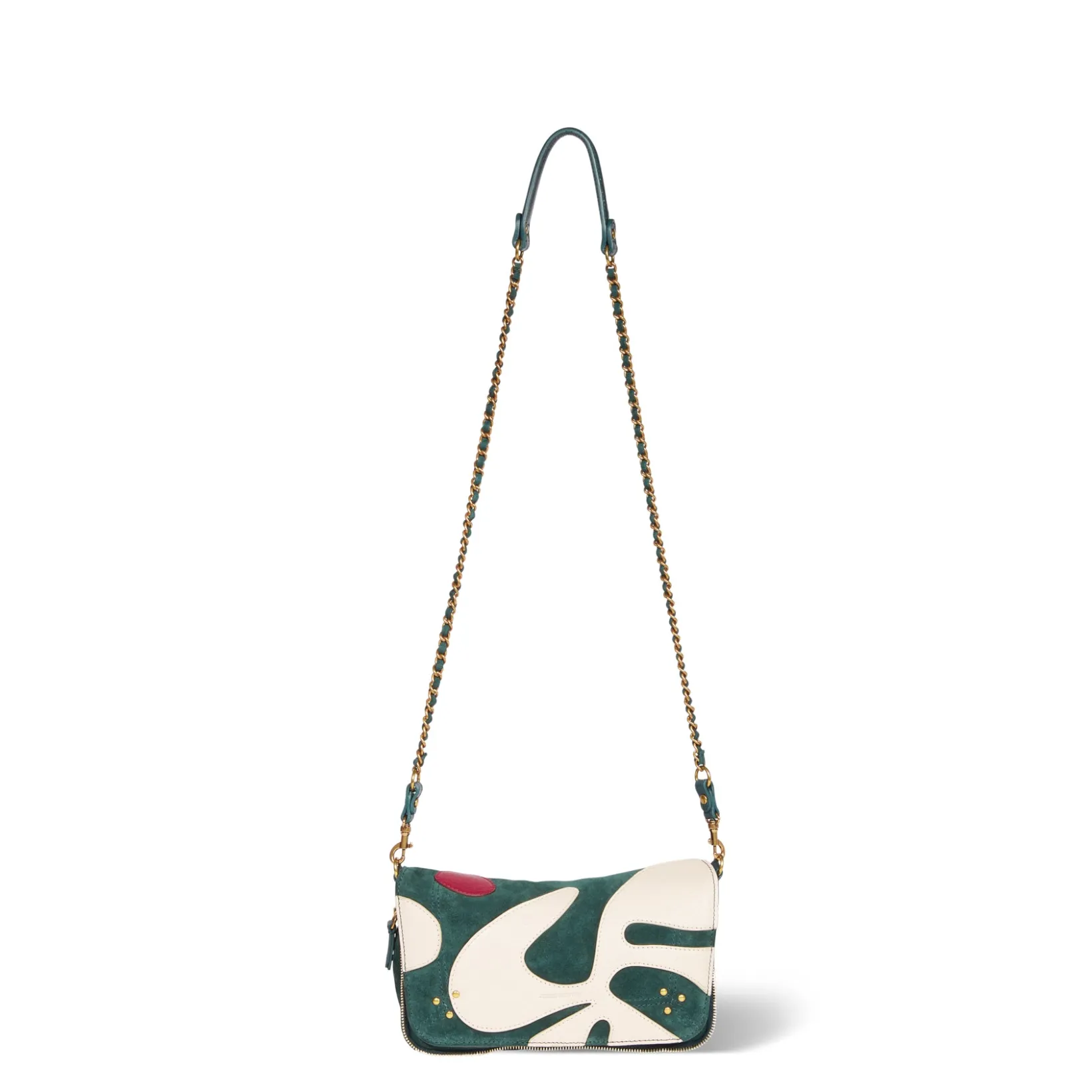 Removable shoulder strap braided leather chain measuring 105 cm. Closing by a flap in magnetized leather. Bag organized …
