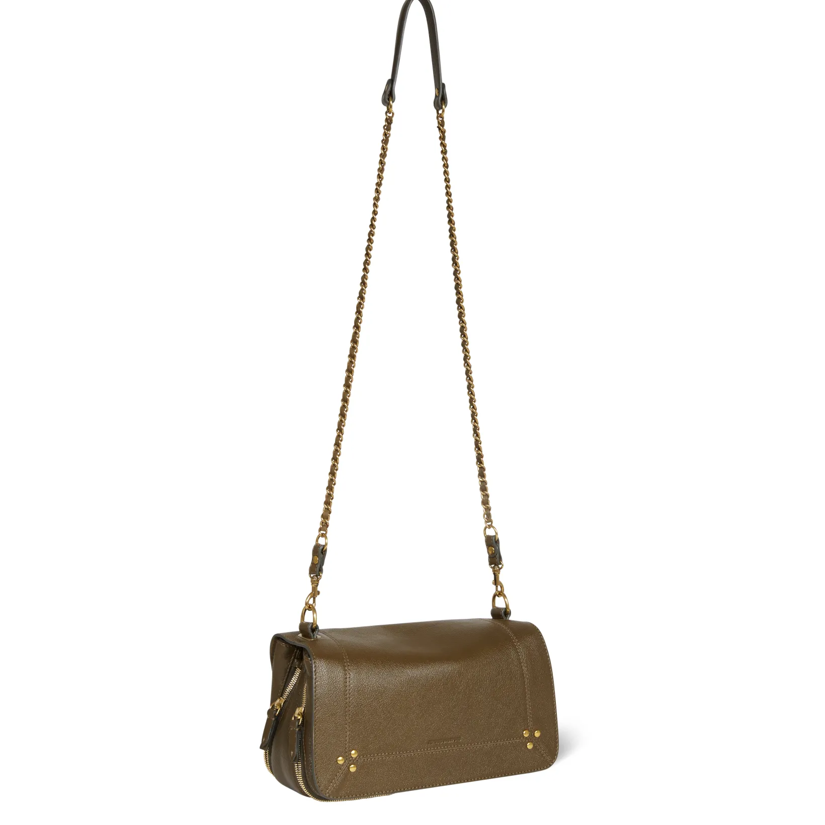 Leather and chain shoulder strap adjustable and two lengths : 65 cm or 105 cm. Leather flap with a double magnetic faste…