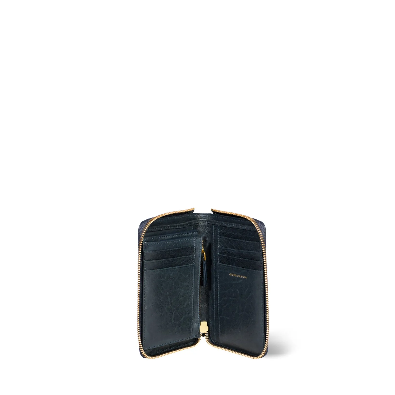Fastens completely with a zipper. Central zipper compartment for your change. Card slots.