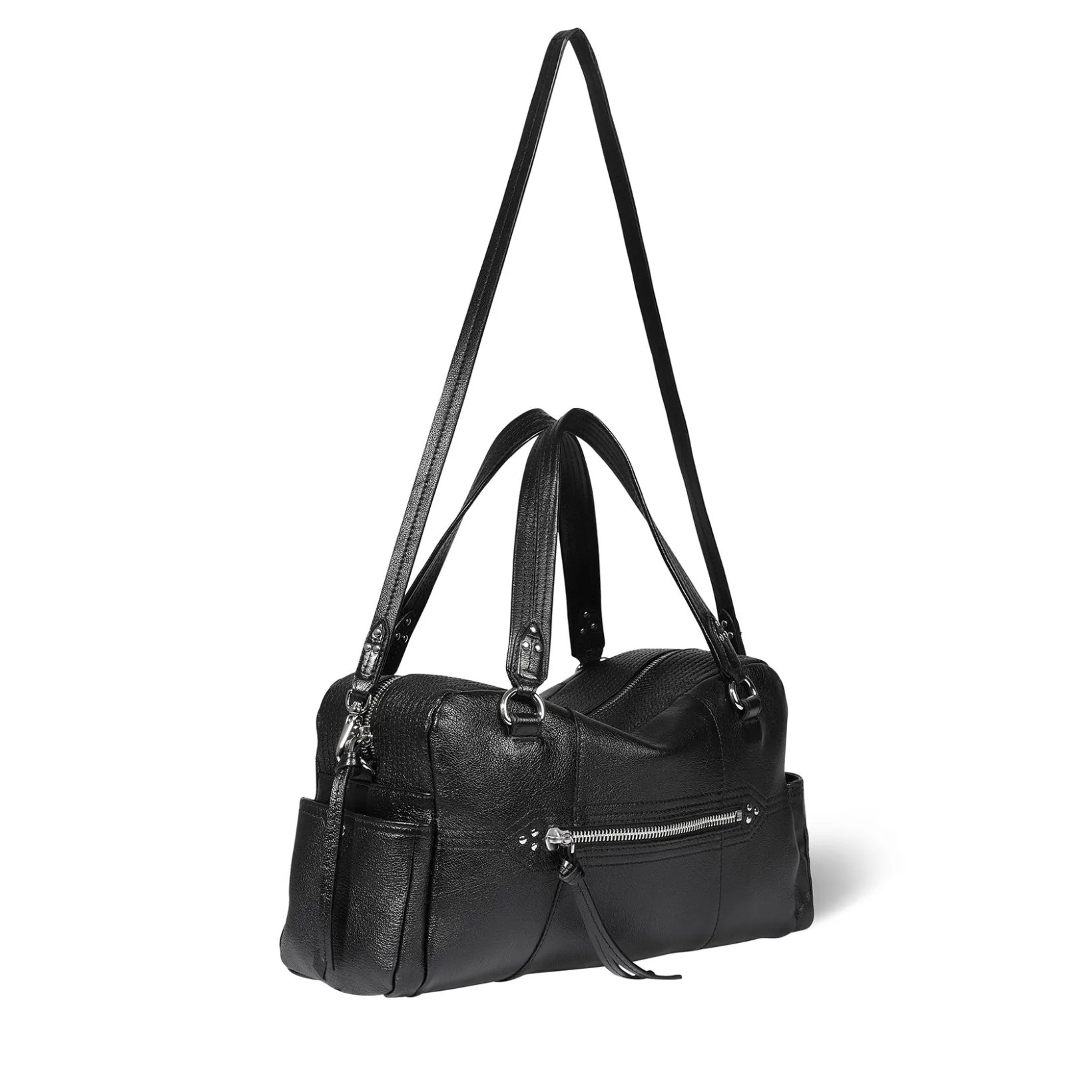 Bowling bag that can be worn over the shoulder, crossbody, or carried by hand. Removable shoulder strap, zip closure wit…