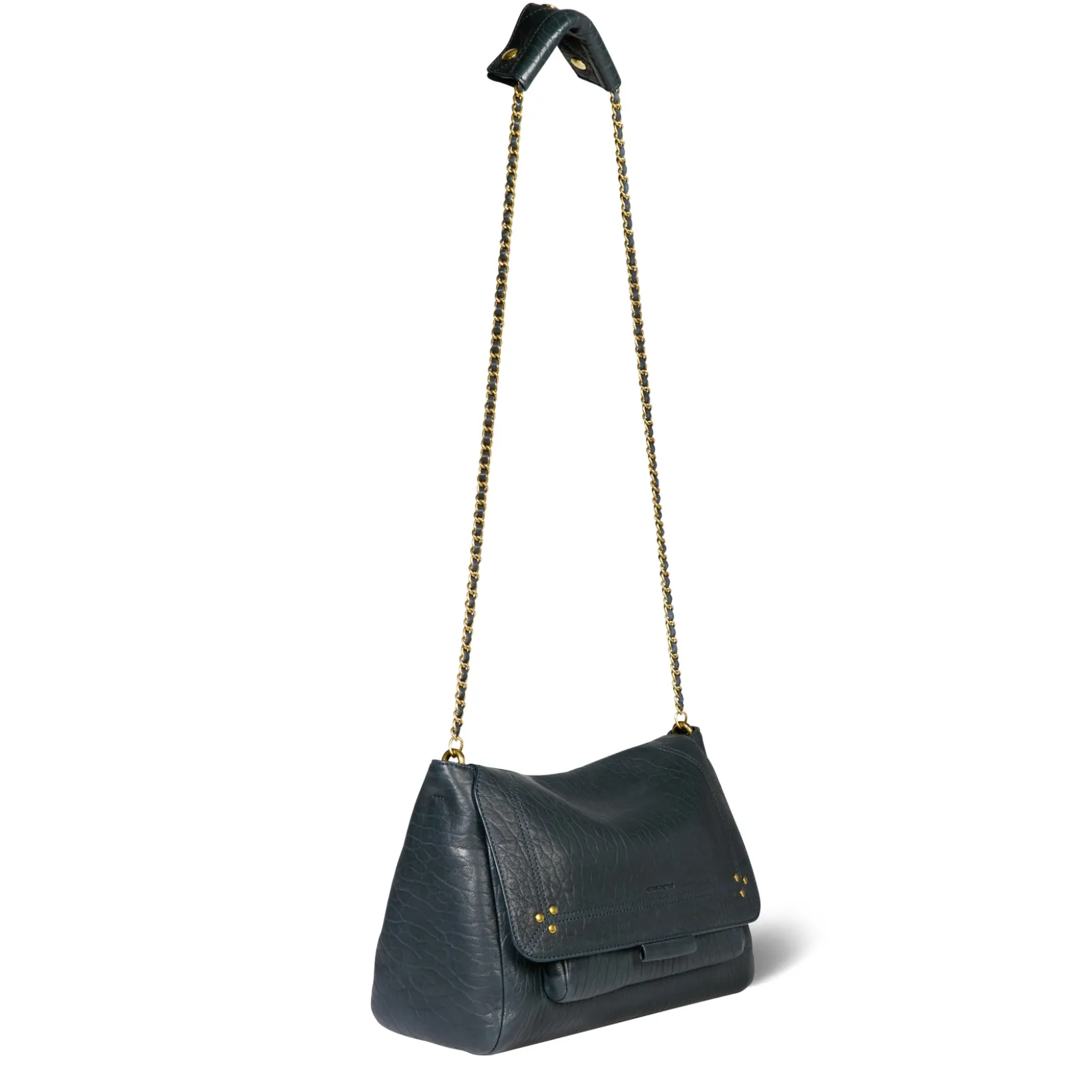 Adjustable chain and leather shoulder strap measuring 105 cm. Wide leg shoulder belt. Flap with snap button closure. One…