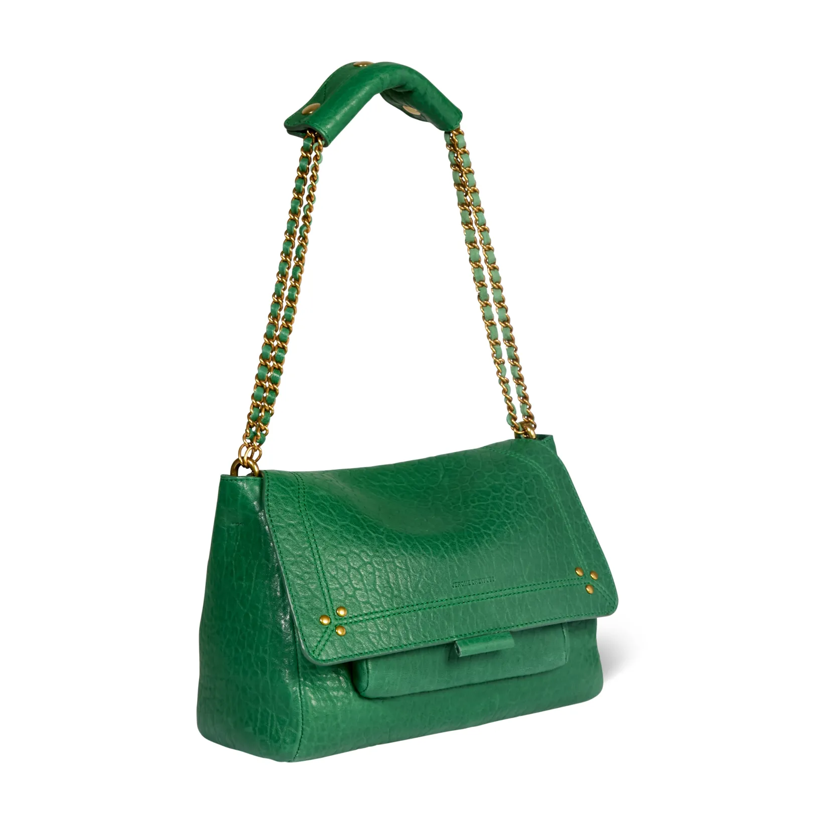 Adjustable chain and leather shoulder strap measuring 105 cm. Wide leg shoulder belt. Flap with snap button closure. One…