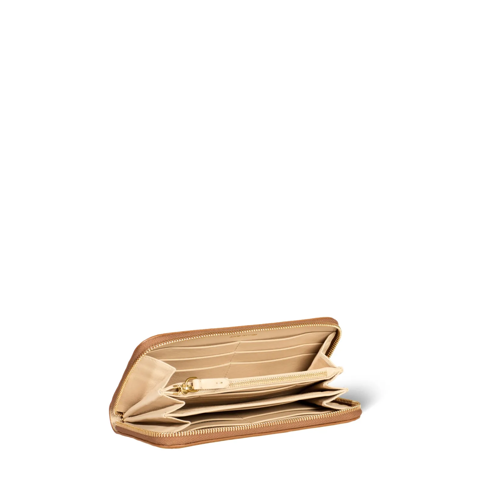 Full zip closure. One zipped coin compartment. Fifteen card slots, bill and ID storage.