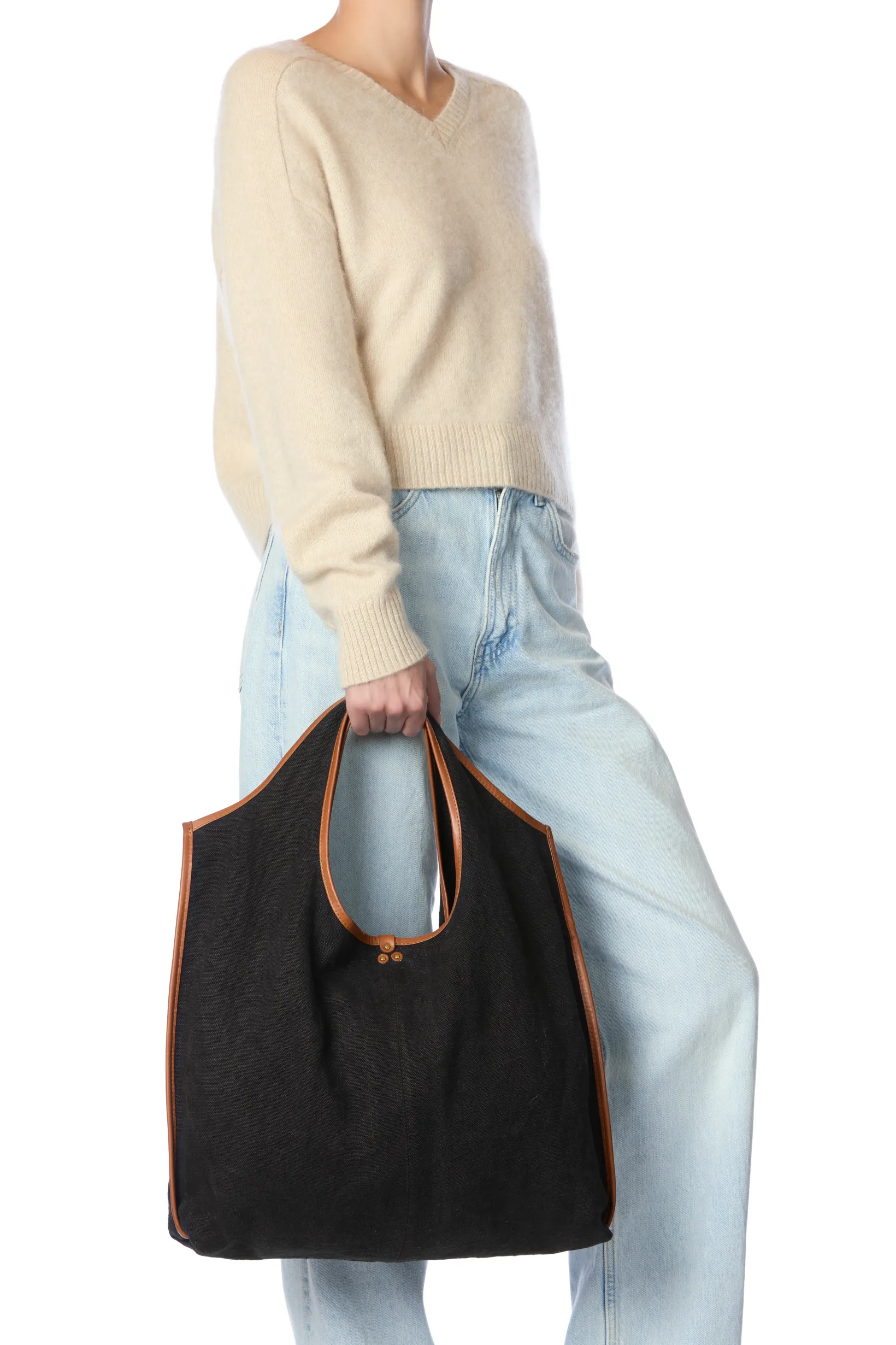 Soft shopping bag with round handles, worn on the shoulder like a tote bag.Cotton lining for lamé versions, unlined for textiles