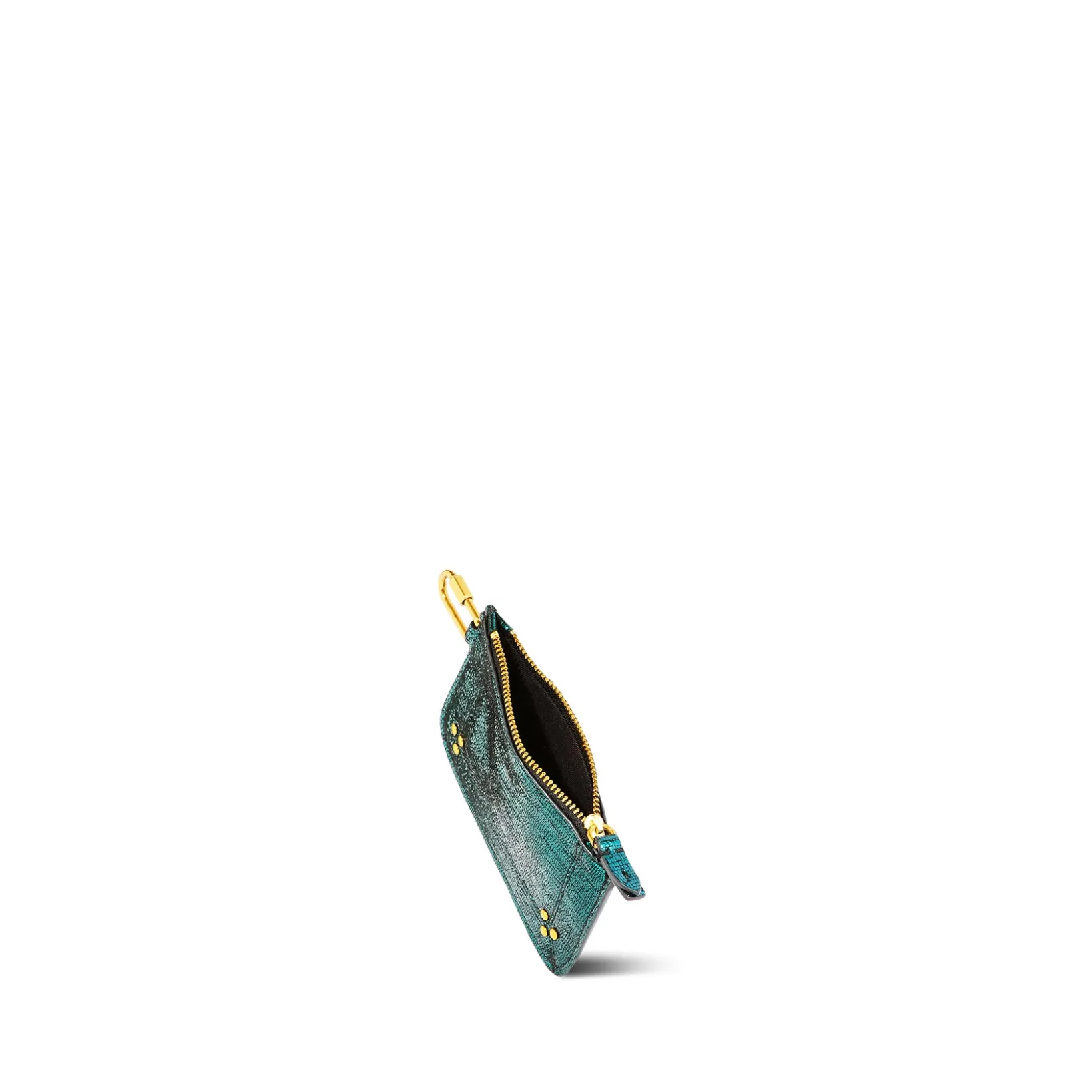 Zip closure. Features a ring that can hook inside your handbag to the key fob. Case 100% Goatskin / Lining…