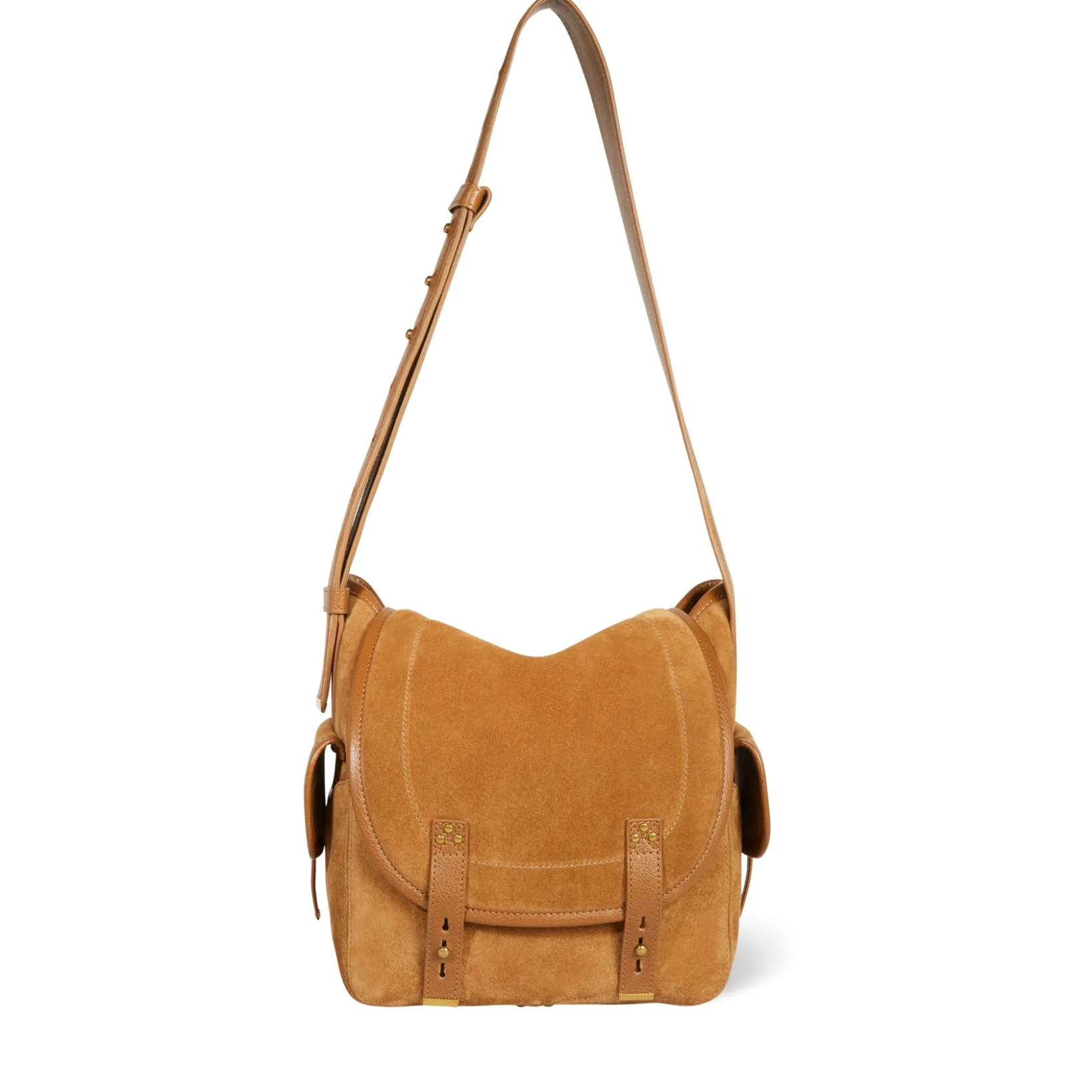 Hobo bag to wear over the shoulder or cross-body with outside pockets. Adjustable shoulder strap. Closing with a leather flap.