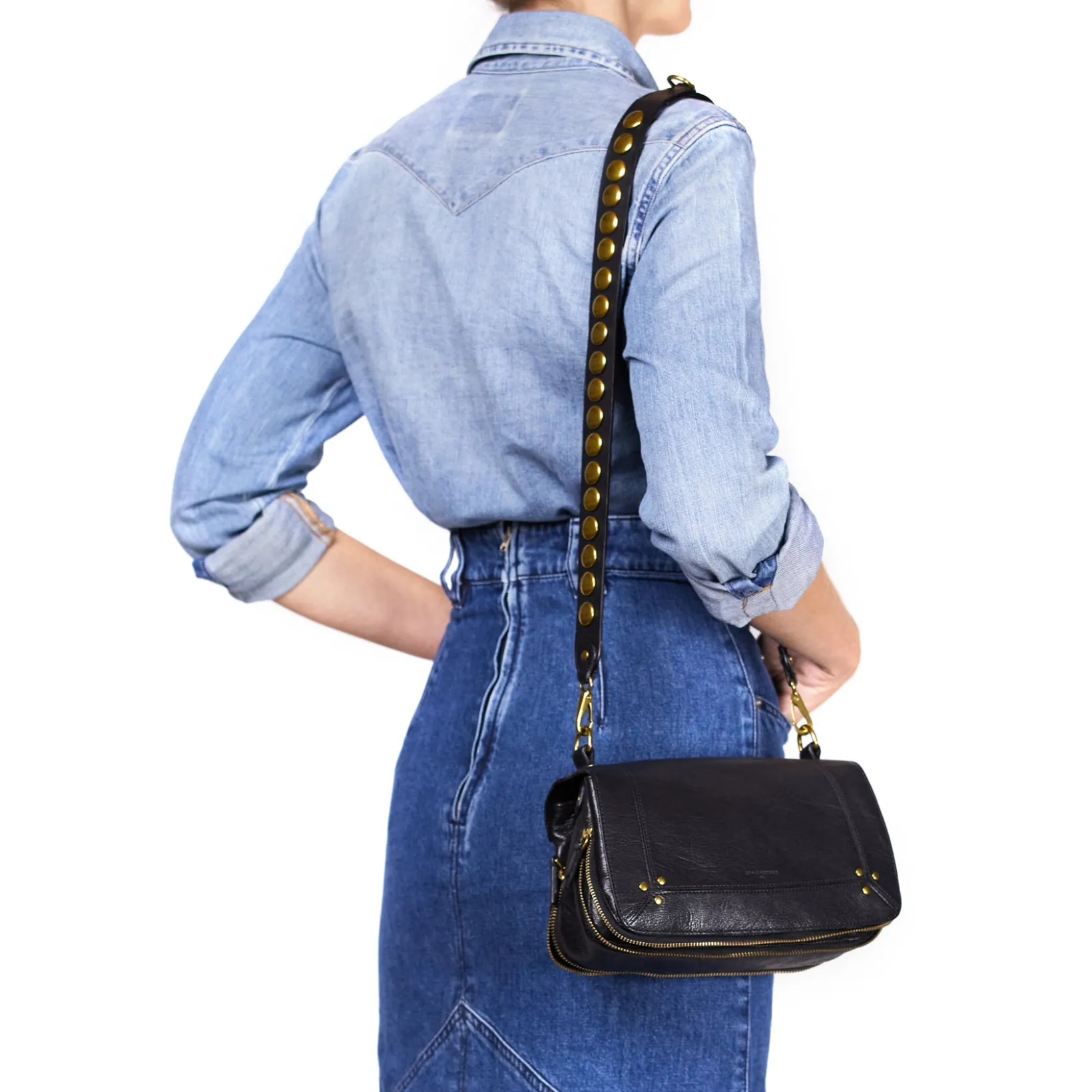 Removable shoulder strap made of genuine vegetable cowhide with large rounded metal studs. Can be associated with Bobi, …