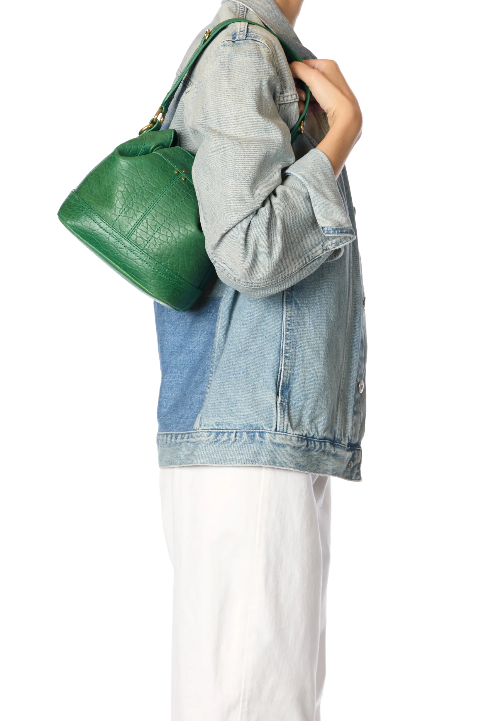 Adjustable snap closure. Worn on the shoulder or crossed. Detachable leather shoulder strap. Inside pocket with a keychain link inside the bag.