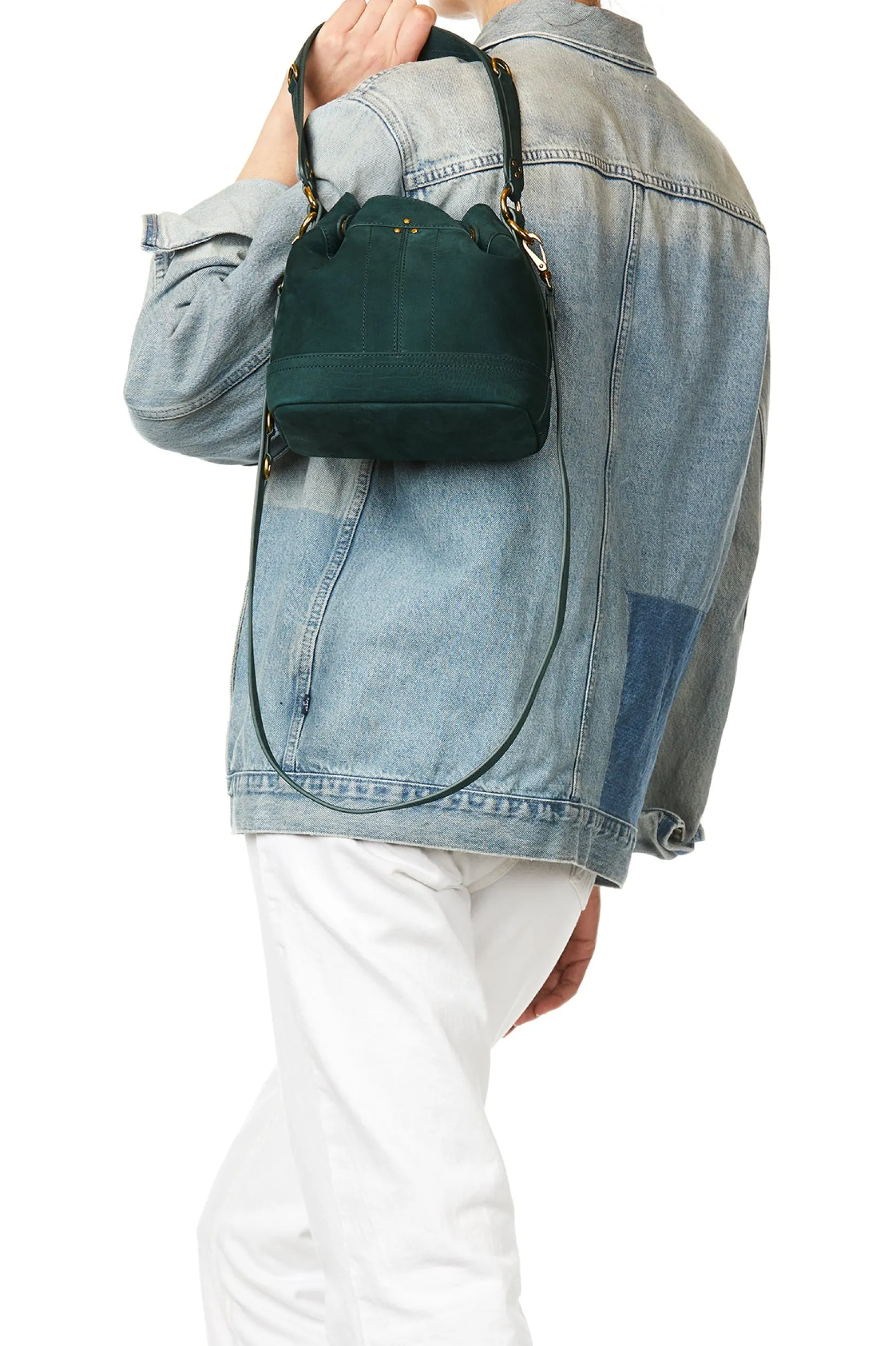 Adjustable snap closure. Worn on the shoulder or crossed. Detachable leather shoulder strap. Inside pocket with a keycha…