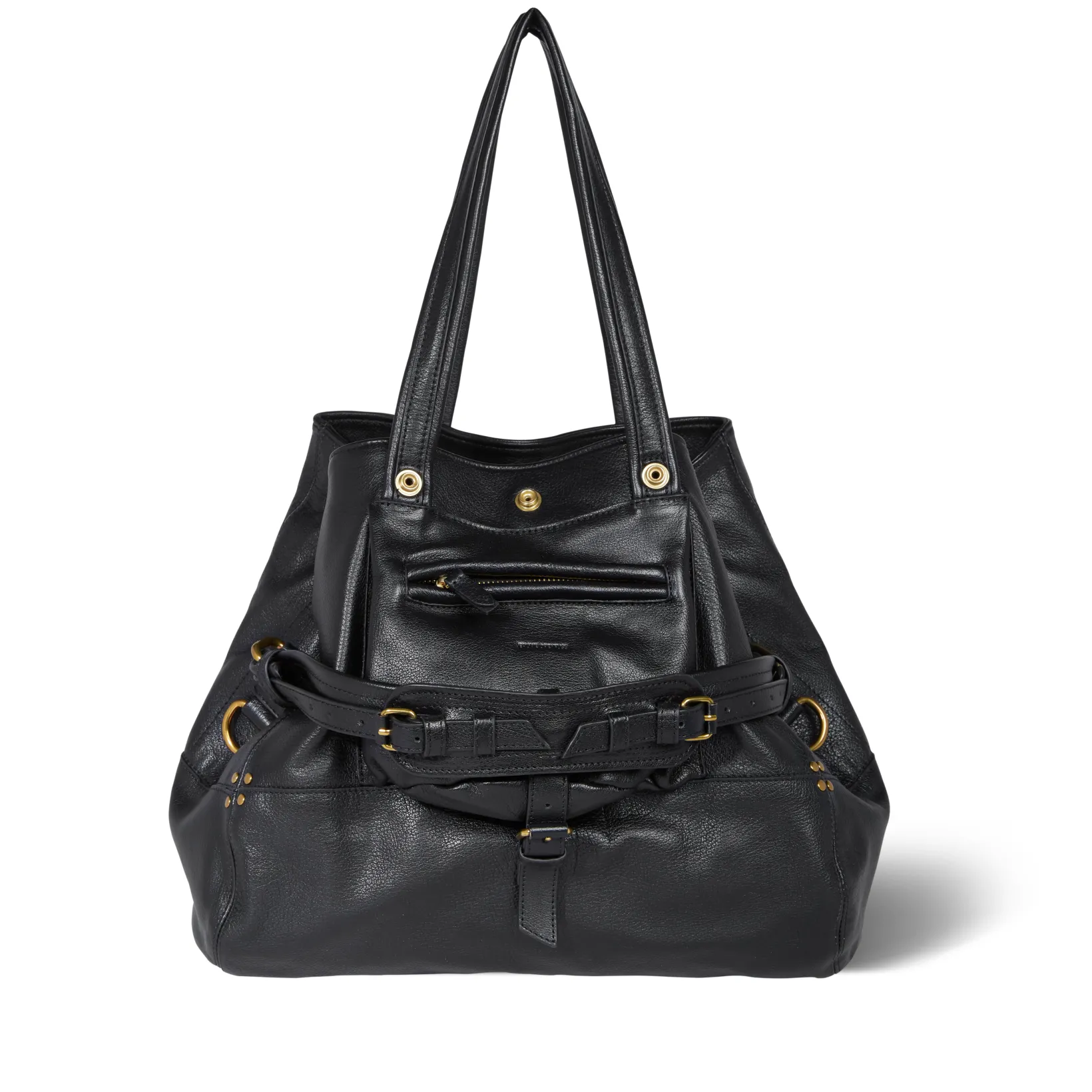 Two leather handles measuring 25cm, maximum lenght 50 cm. Non-adjustable leather strap measuring 48 cm. One exterior zip…