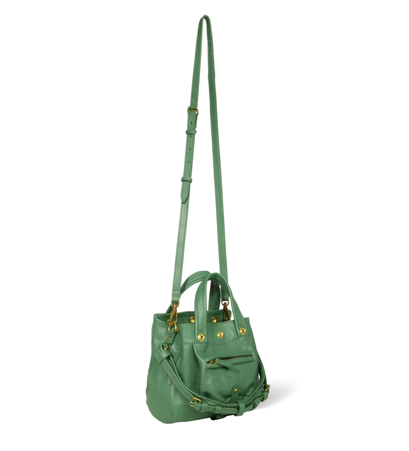 Two leather handles on the top of the bag, height 9 cm. A removable and adjustable leather shoulder strap of maximum 130cm. One external zipped pocket on the front of the bag. One inside pocket. A key ring inside the bag.