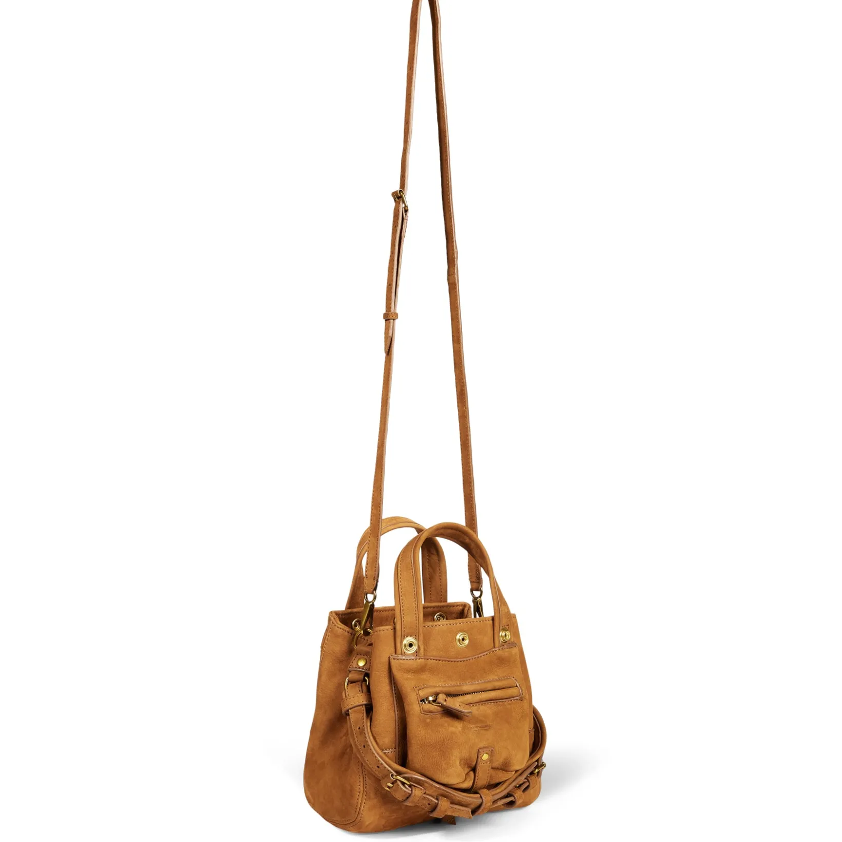 Two leather handles on the top of the bag, height 9 cm. A removable and adjustable leather shoulder strap of maximum 130cm. One external zipped pocket on the front of the bag. One inside pocket. A key ring inside the bag.