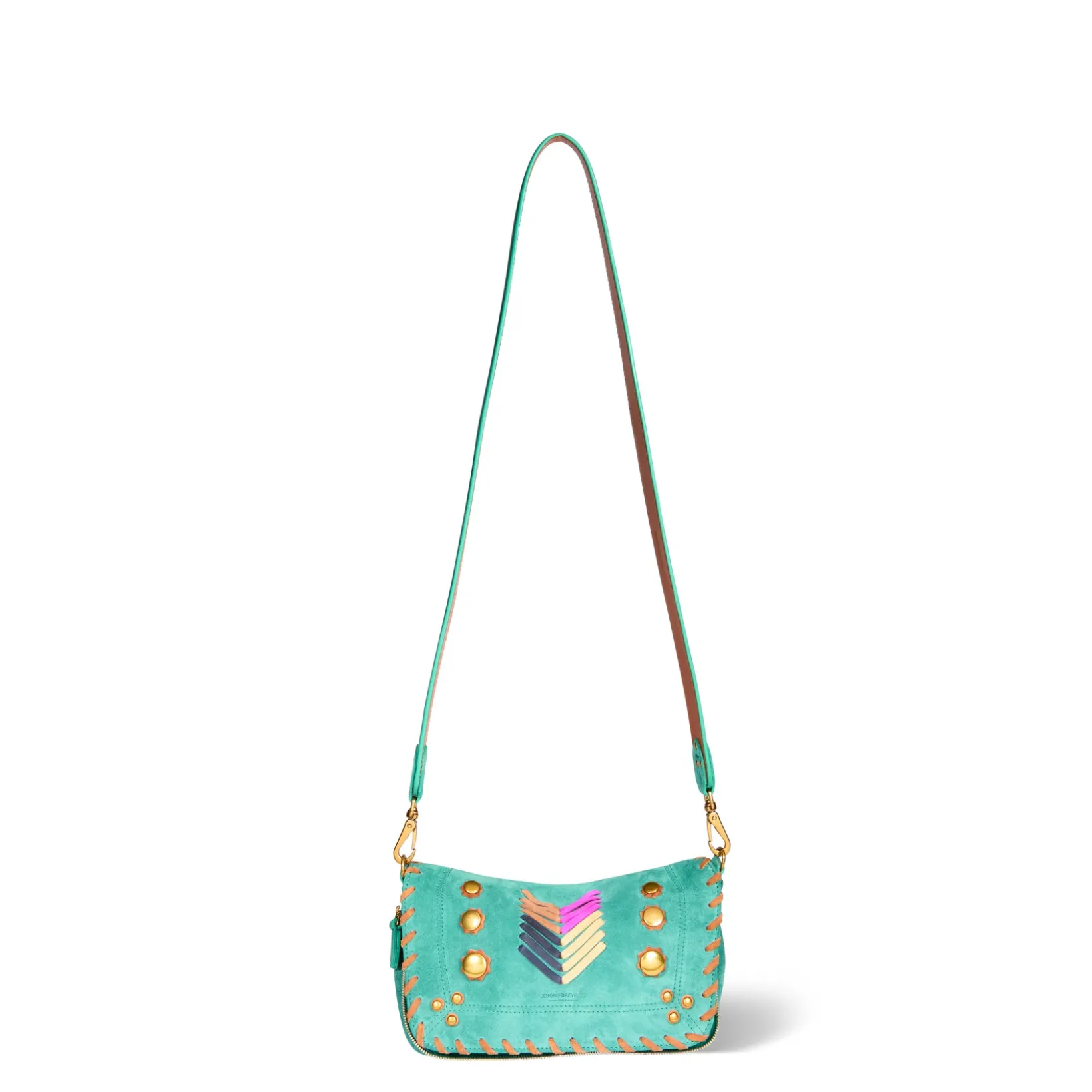 Removable shoulder strap braided leather chain measuring 105 cm. Closing by a flap in magnetized leather. Bag organized in a large compartment. One detachable mirror and key hook inside.