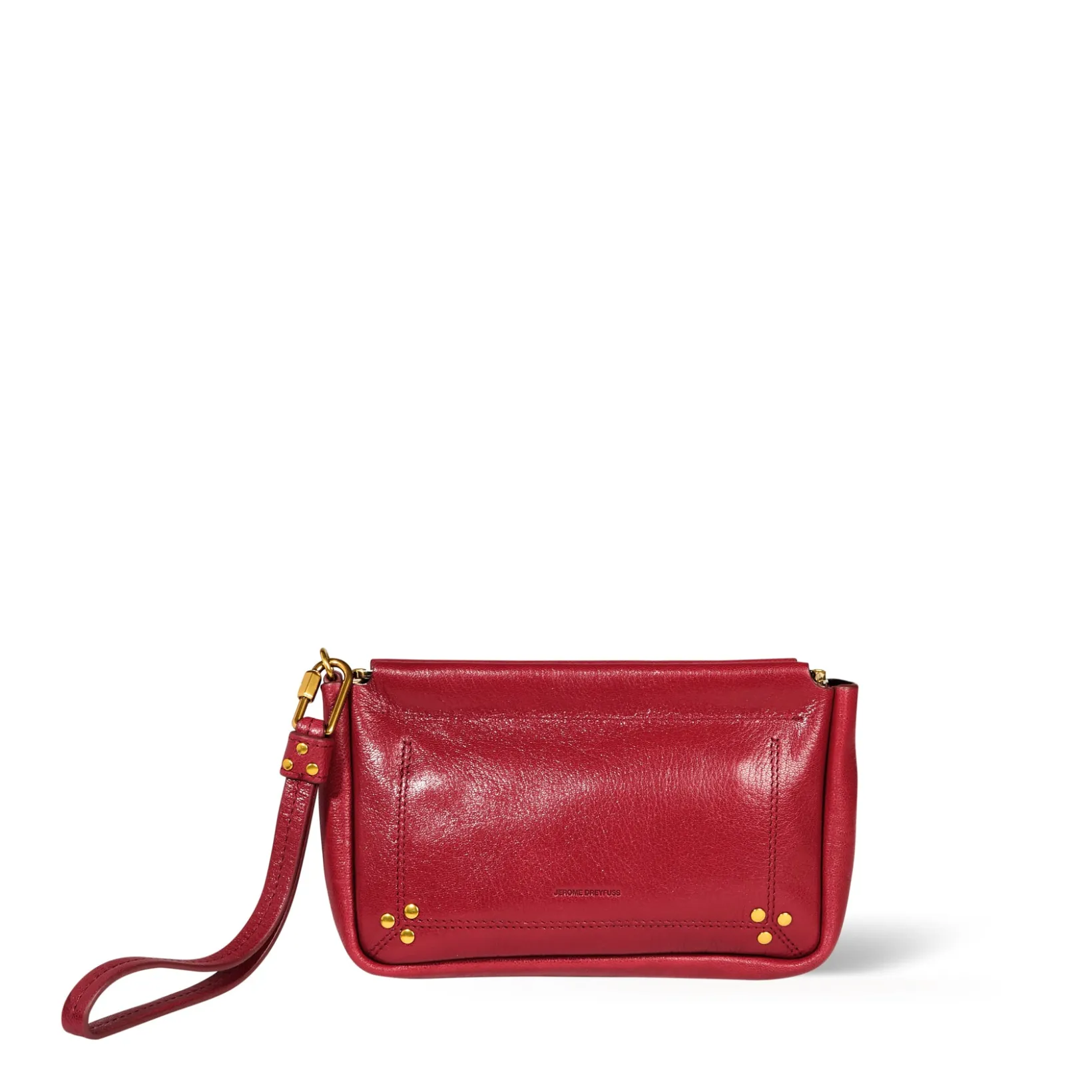 Hand-held, or to slip into a large tote bag. Removable strap thanks to the screw carabiner. Snap closure.