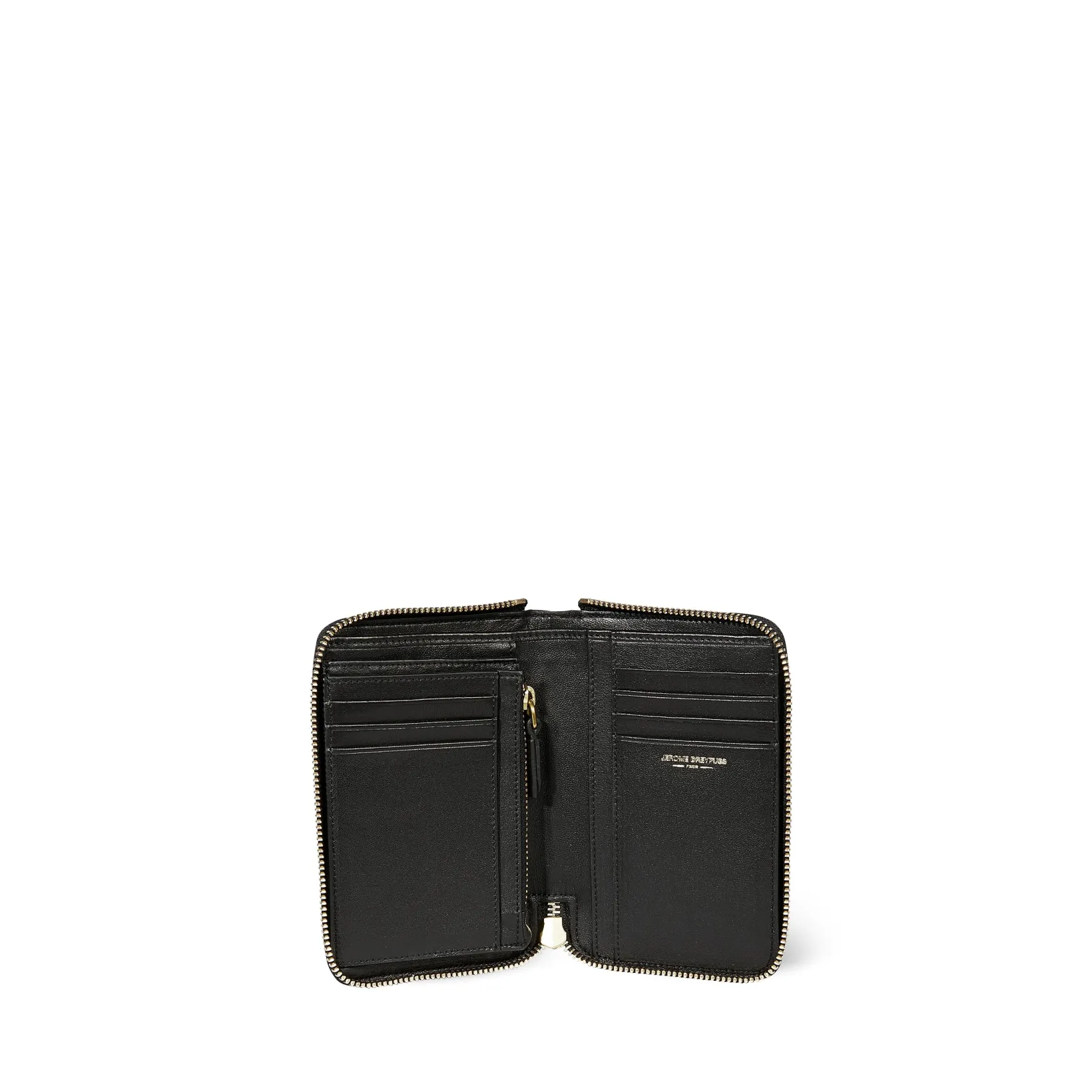 Fastens completely with a zipper. Central zipper compartment for your change. Card slots.