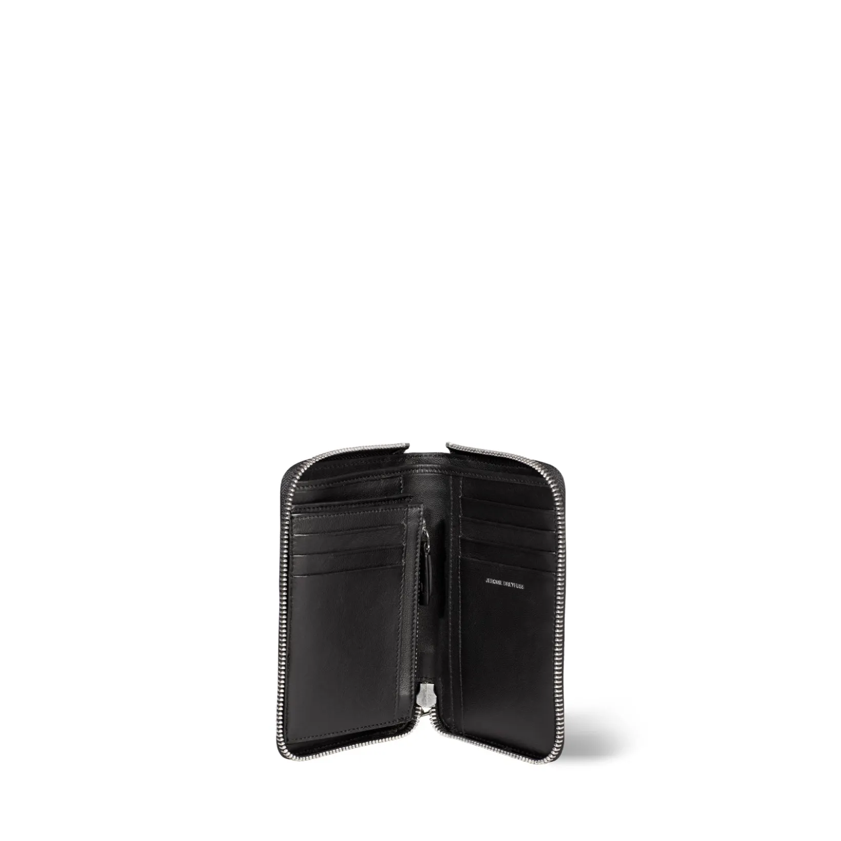 Fastens completely with a zipper. Central zipper compartment for your change. Card slots.