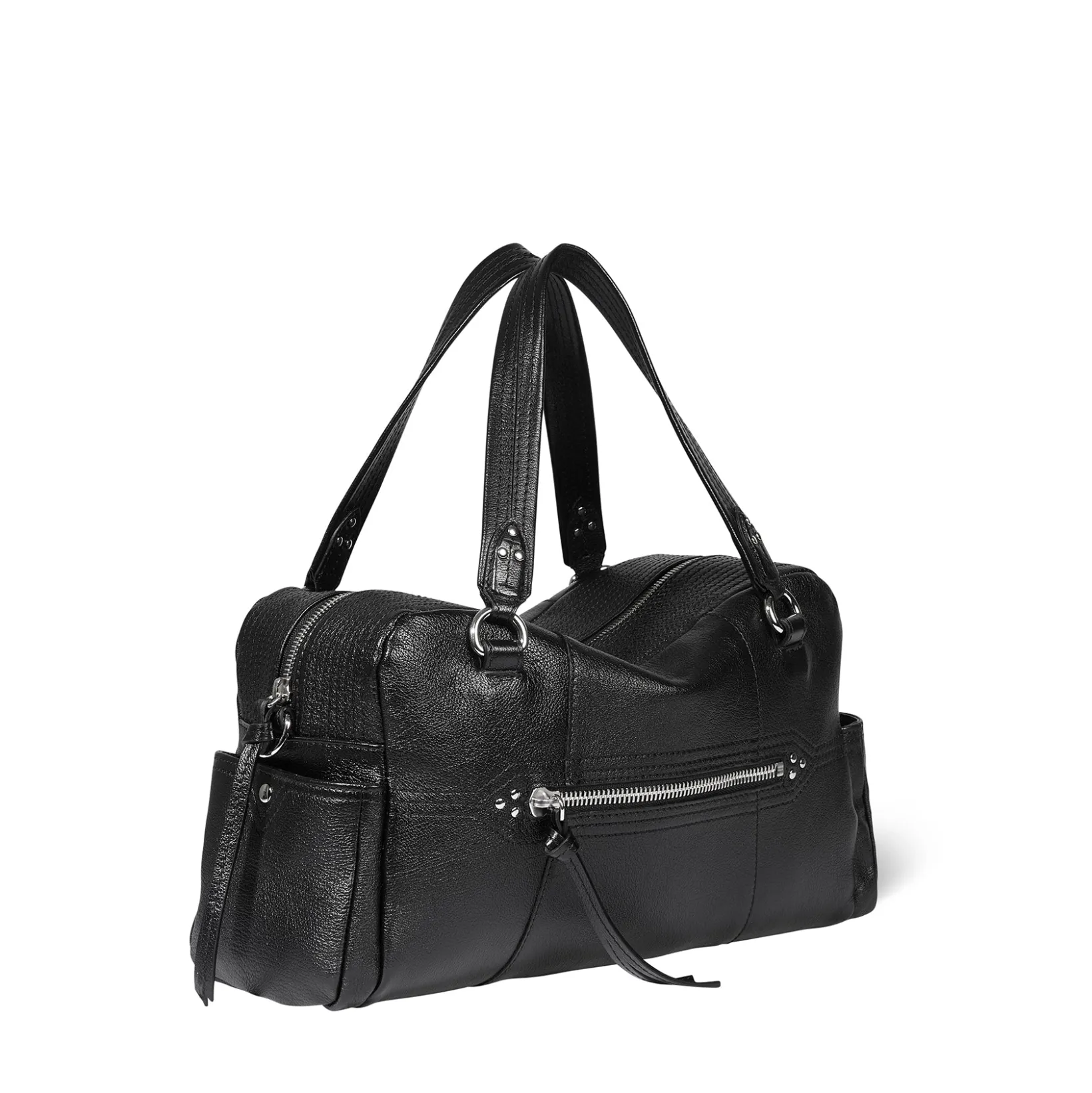 Bowling bag that can be worn over the shoulder, crossbody, or carried by hand. Removable shoulder strap, zip closure wit…
