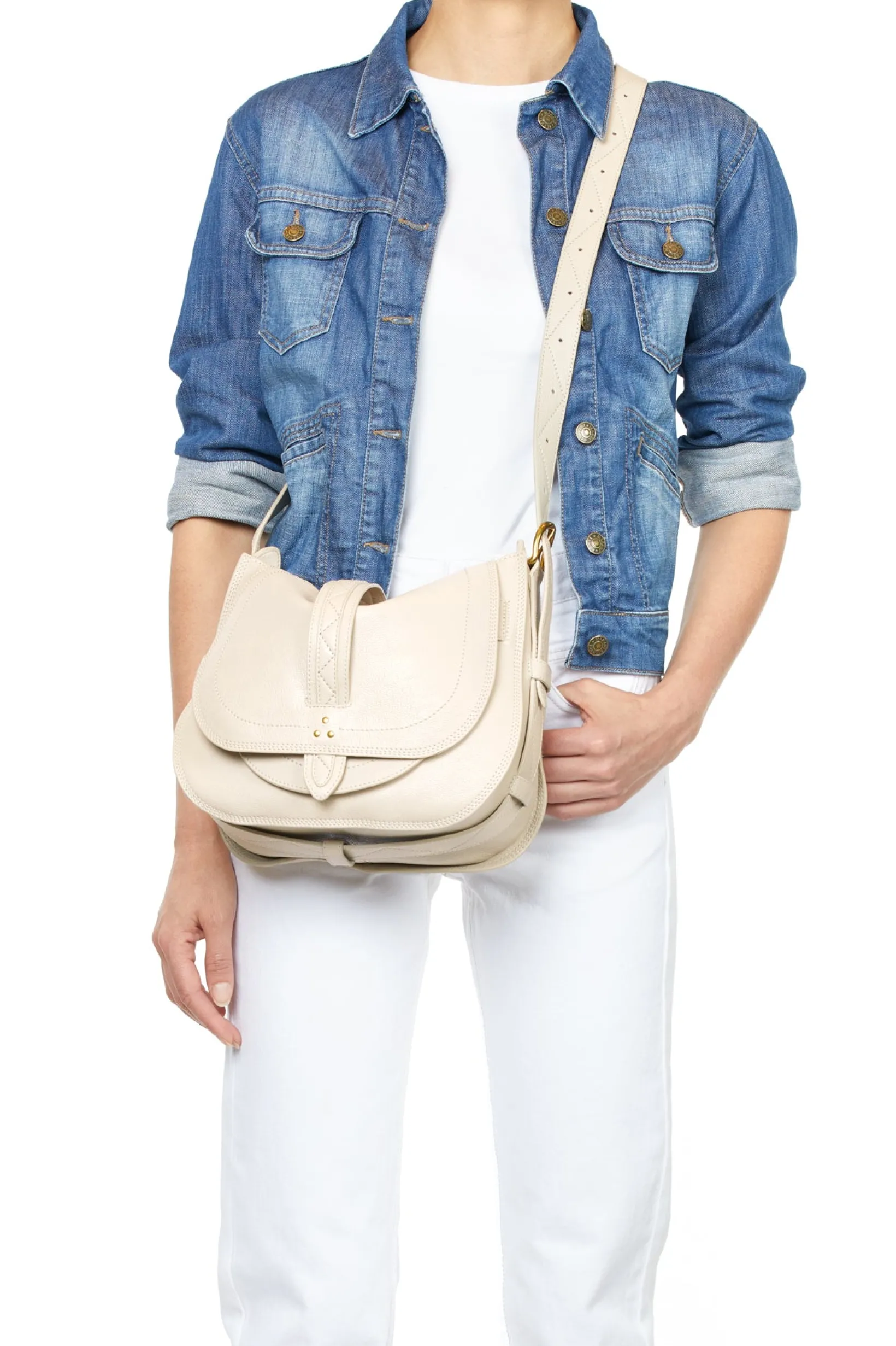 Closing with a leather flap. A removable leather shoulder strap, measuring a maximum of 82 cm. One outside pocket. One inside pocket with a fully zipped compartment. A keychain link inside the bag.