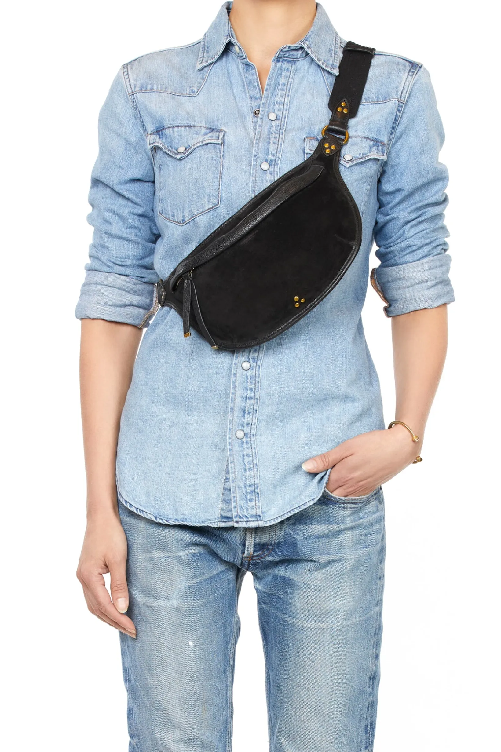 Top zip closure. An adjustable belt, measuring a minimum of 68 cm and a maximum of 85 cm with a width of 4cm. One inside patch pocket. One outside zipped pocket.