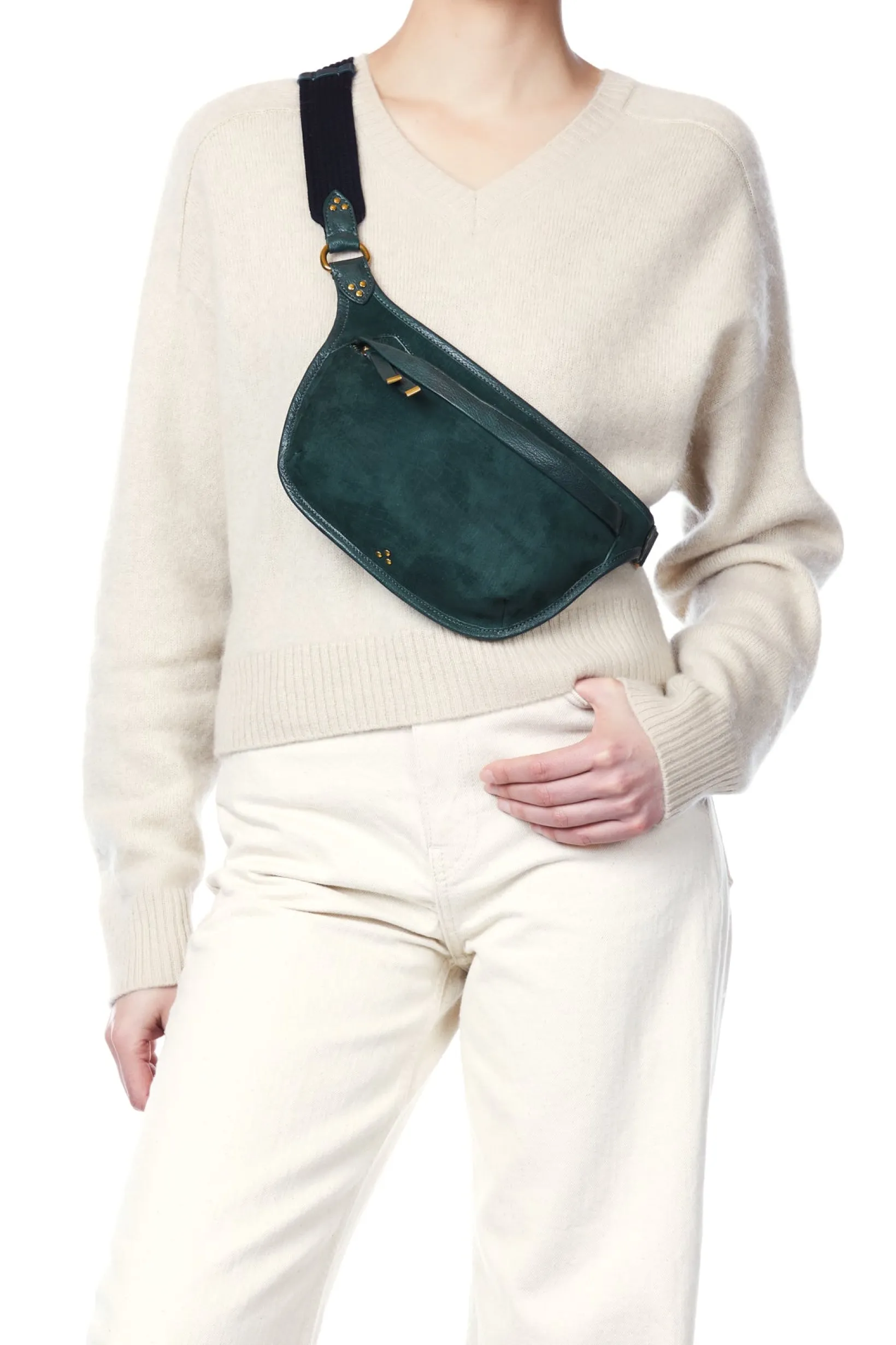 Top zip closure. An adjustable belt, measuring a minimum of 68 cm and a maximum of 85 cm with a width of 4cm. One inside patch pocket. One outside zipped pocket.