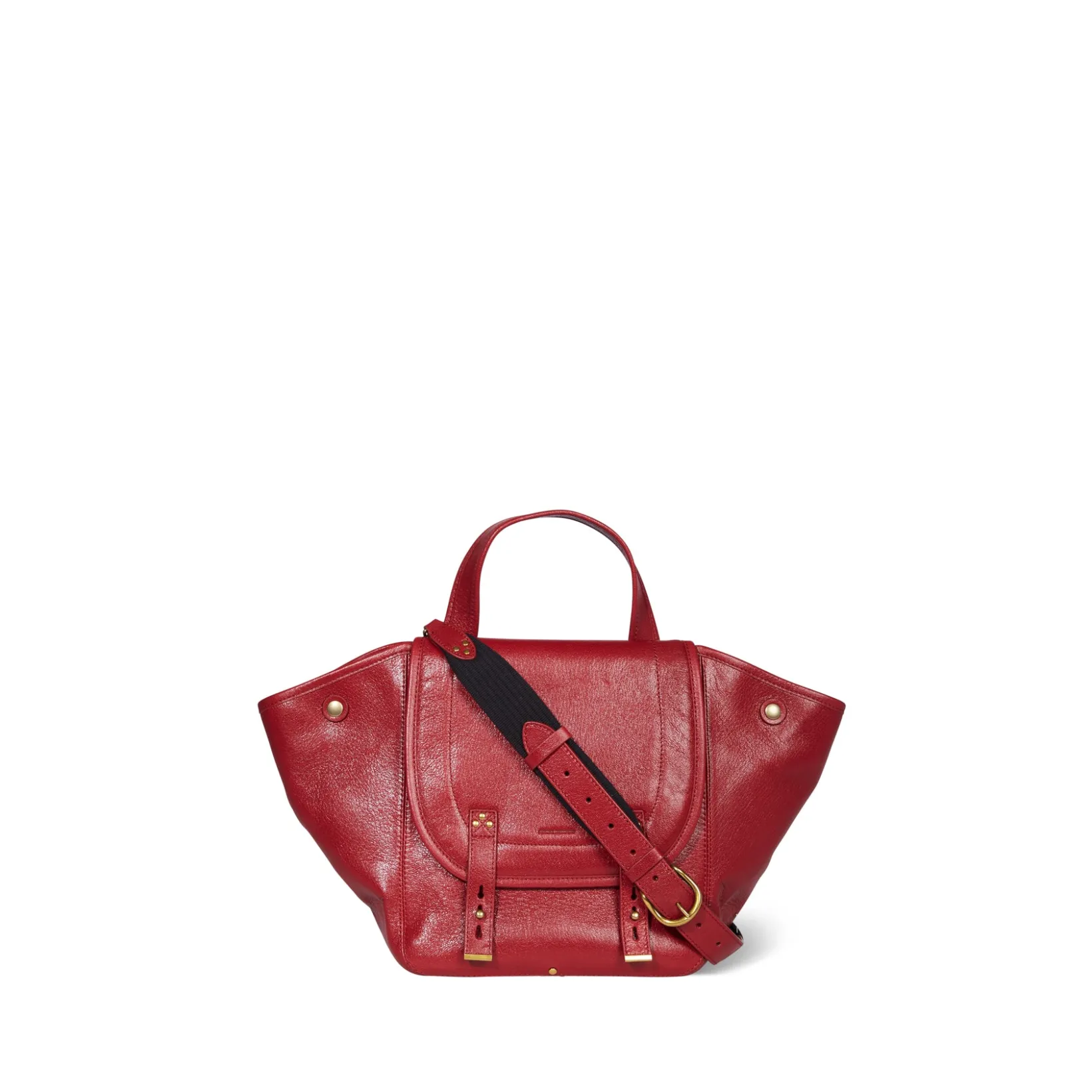 Basket-style tote bag, can be worn on the shoulder, across the chest or by hand. Adjustable, removable shoulder strap. Closing with a leather flap.